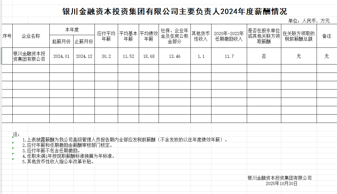 銀川金融資本投資集團有限公司企業負責人2024年度薪酬情況
